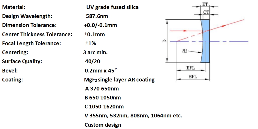 *In addition to UV grade fused silica, we also supply CaF2, N-BK7, ZnSe substrate PCV lenses.